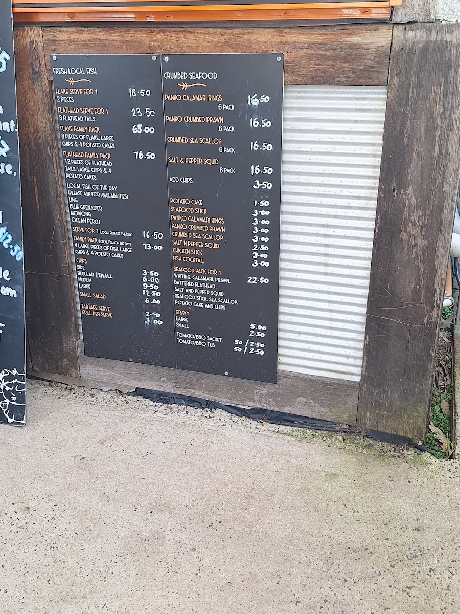 Choice of local fish. Can be Ling Cod, Blue Grenadier, Mowong, Ocean Perch or Flathead fillet (skin -on) Please ask. Add Chips $2.50