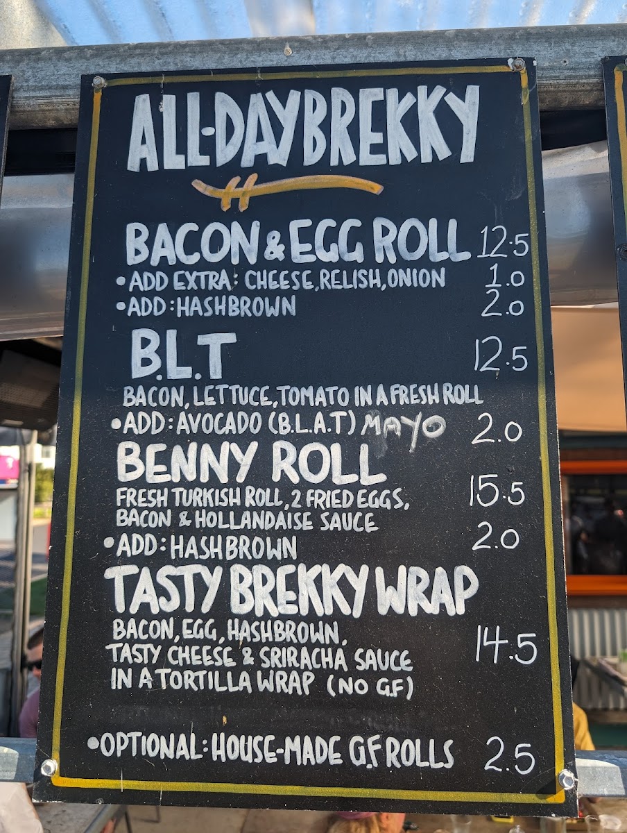 Fresh house made Turkish roll, award winning double smoked bacon, local free range eggs, choice of sauce or house made tomato relish