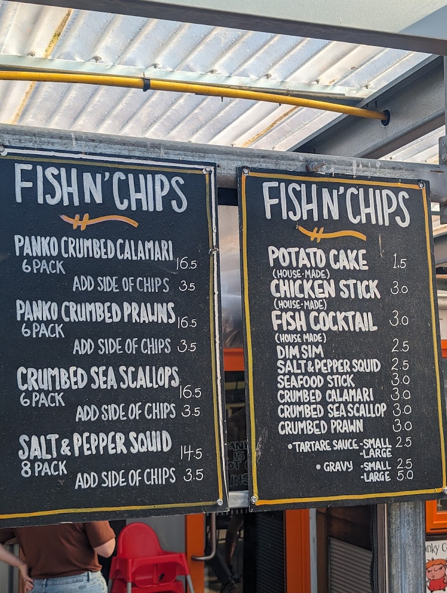 Dim sim $2.50, Seafood stick $3.00, Panko crumbed calamari $2.50, Panko Crumbed Prawn $2.50, Crumbed sea scallop $2.50, Salt n Pepper squid $2.00, McCain's chicken tender $2.50 or House made local fish cocktail $2.50